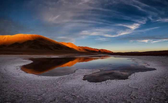 An unforgettable day awaits at Salar de Atacama, Chile’s largest salt flats! Marvel at this vast landscape, encircled by mountains and dotted with pink flamingos. Dive into Ojos del Salar, two freshwater sinkholes perfect for a refreshing swim. Next, head to Laguna Cejar, where the salt-rich waters let you float effortlessly. As evening approaches, visit Death Valley for a magical sunset, watching the colors of the valley shift before your eyes. End the night with a stargazing tour in one of the world’s premier locations for observing the night sky.